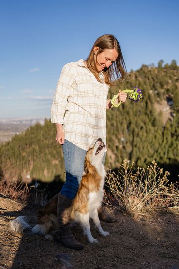 The Perfect Fit for Colorado Dog Owners: As an environmental enthusiast and native to Colorado, I spend my free time hiking, mountain biking, snowboarding, paddle boarding, and camping in the great outdoors, and always brings my dog along for the fun! I share my life with a 4 year old Border Collie named River, a young Border Collie puppy named Sprocket, and my dog-loving husband, Ryan. My dogs and I play and compete in a variety of dog sports including agility, disc (frisbee), obedience, tricks, and barn hunt. If you're interested in trying out a new sport with your dog, I would be happy to help you get started!